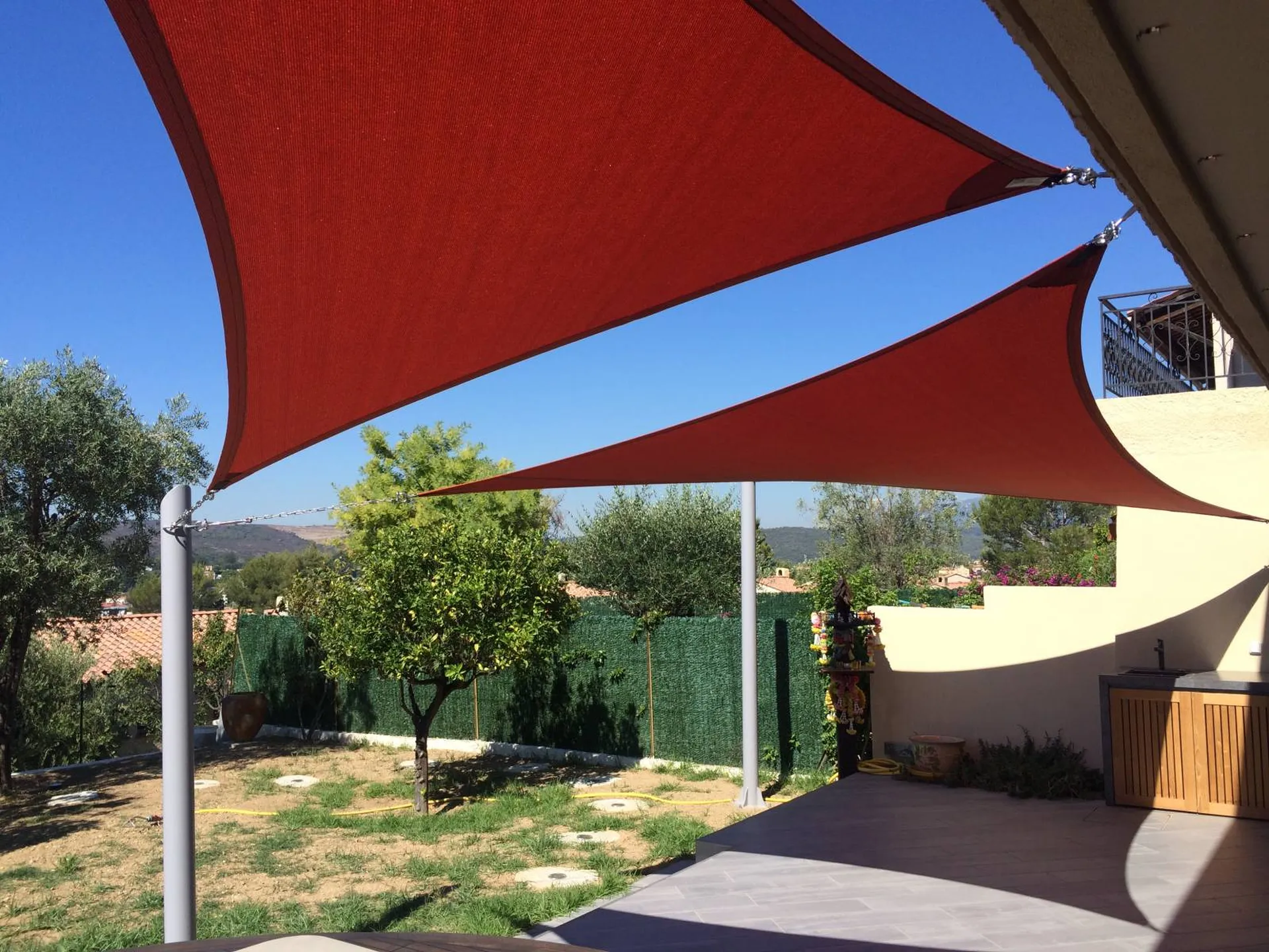 Voile d'ombrage sur mesure et installation à Nice , les voiles d'ombrage Shade Sails Sun sont confectionnées sur mesure. Les voiles sont composées d'une toile haute densité, résistance aux vents les plus violents.